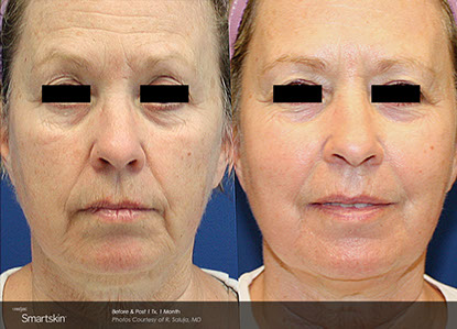 The Smartskin uses C02 fractional laser technology to reach deep below the surface of the skin and target aging skin tissues. The laser energy activates new collagen production deep in the epidermis. As new skin cells form, your skin is naturally revitalized to improve skin tone and texture. Laser skin resurfacing delivers impressive results with little downtime.